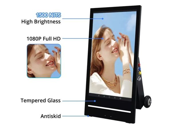 Our Rechargeable Battery-Powered Portable Digital Signage is designed to provide maximum flexibility and convenience for your digital signage needs. With a long-lasting battery life and lightweight design, you can take your message anywhere, anytime.