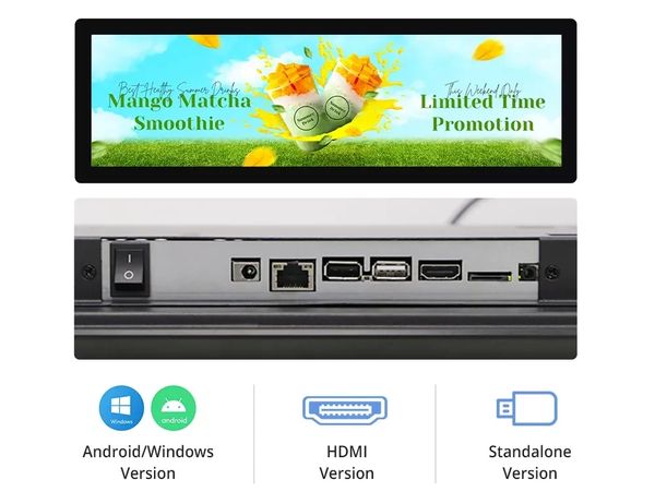 OS-Technologies Lcd bar screen supports Android/Windows version, to fit in different customer using habits. Besides, it also has high speed HDMI & USB ports for data transmission.